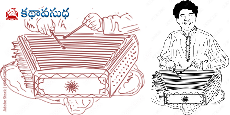 దానిని లక్ష్య పెట్టనట్లుగా, ప్రాణంలేని ప్లాస్టిక్ స్ట్రిప్ లతో, సుతారంగా సంతుర్ వాయిద్యానికి ప్రాణం పోస్తూ, దివ్య నాదాన్ని సృజిస్తుంటే, అవిరామంగా కదులుతున్నఅతని రెండు చేతుల వేళ్ళు బ్లర్ అయి కనిపిస్తున్నాయి. నల్లని పొడవైన కనుబొమల క్రింద అరమోడ్చిన కనురెప్పలు… ఆ రెప్పల క్రింద దాగున్న తేనె రంగు కళ్ళు నాకు తెలుసు!